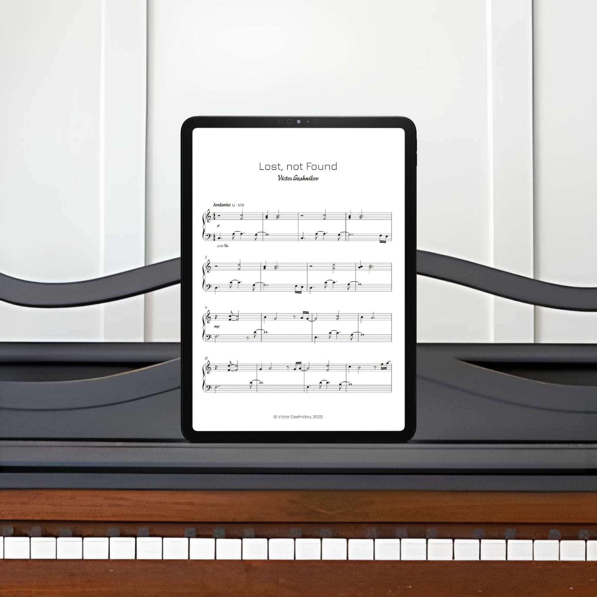 High quality PDF file with sheet music for my piece ’Lost, not Found'.