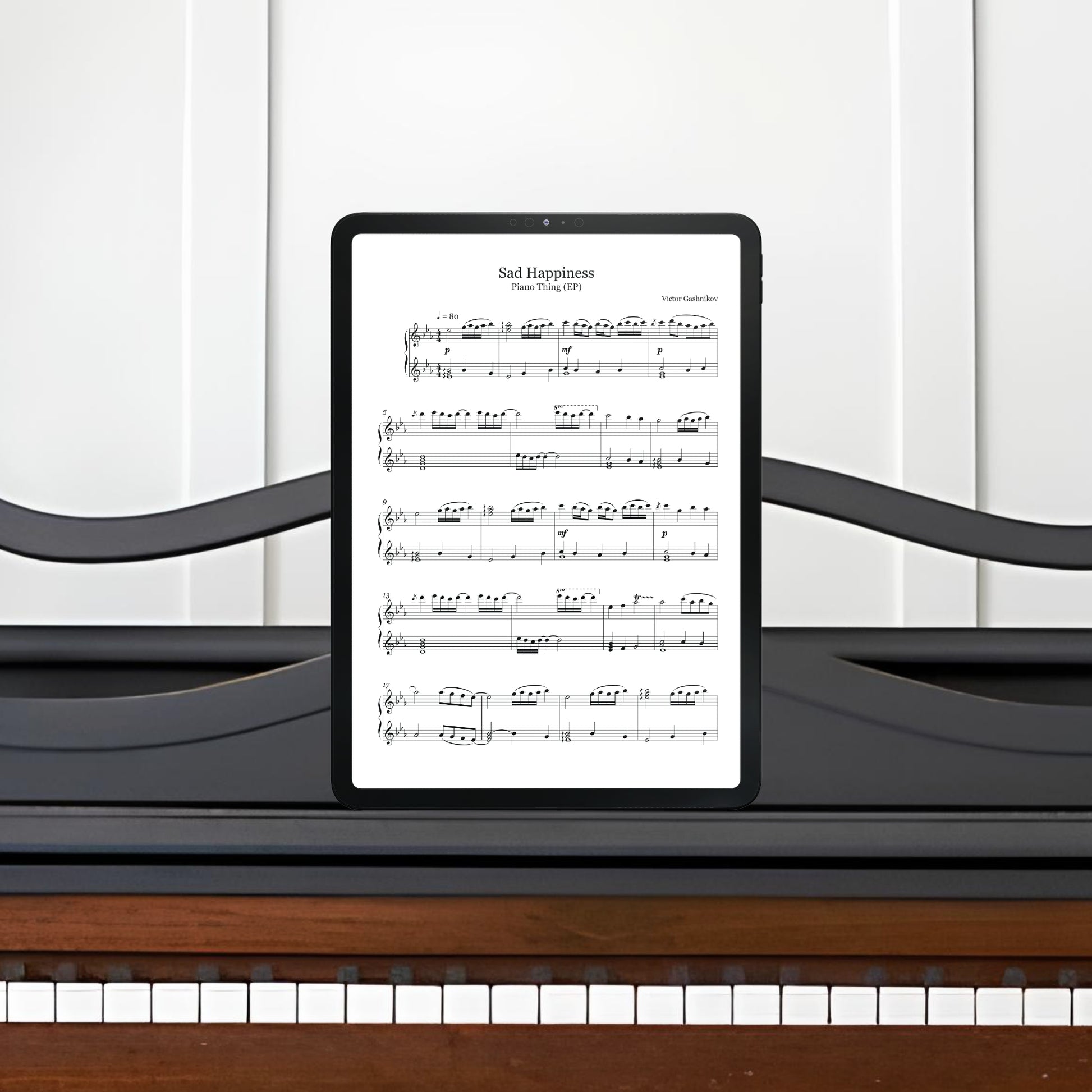 High quality PDF file with sheet music for my piece "Sad Happiness".